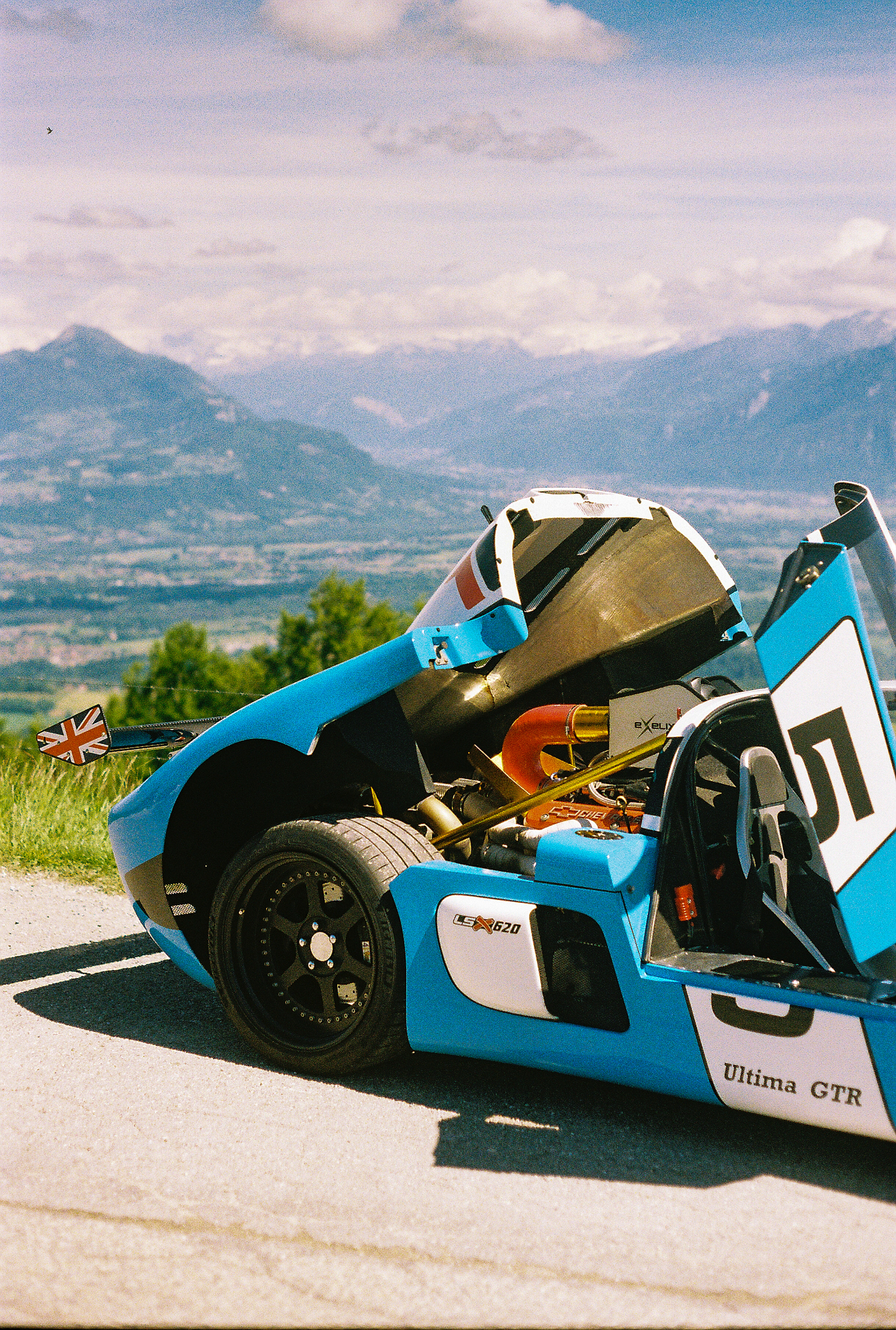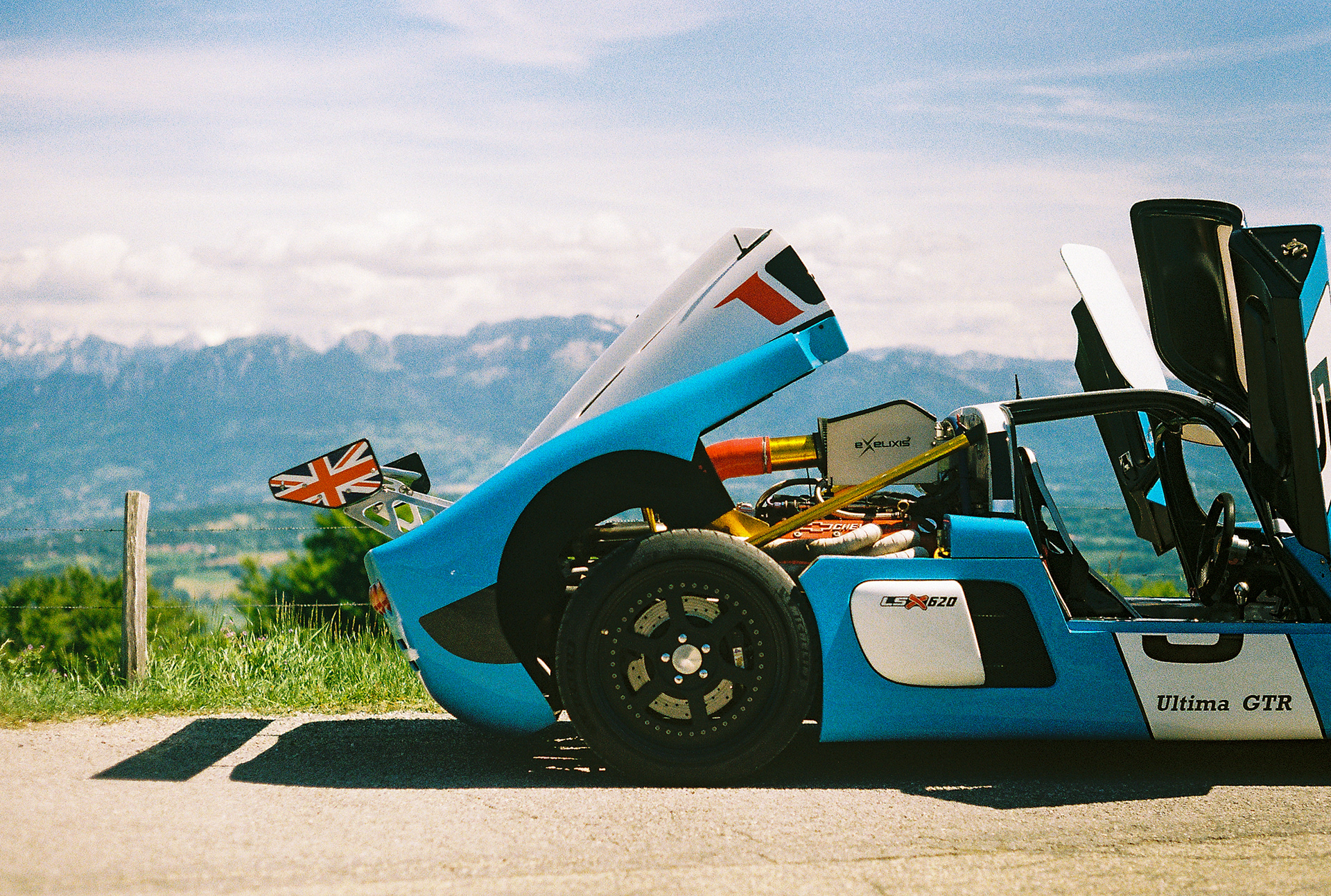 Ultima GTR photographiée à l'argentique au sommet du Salève.